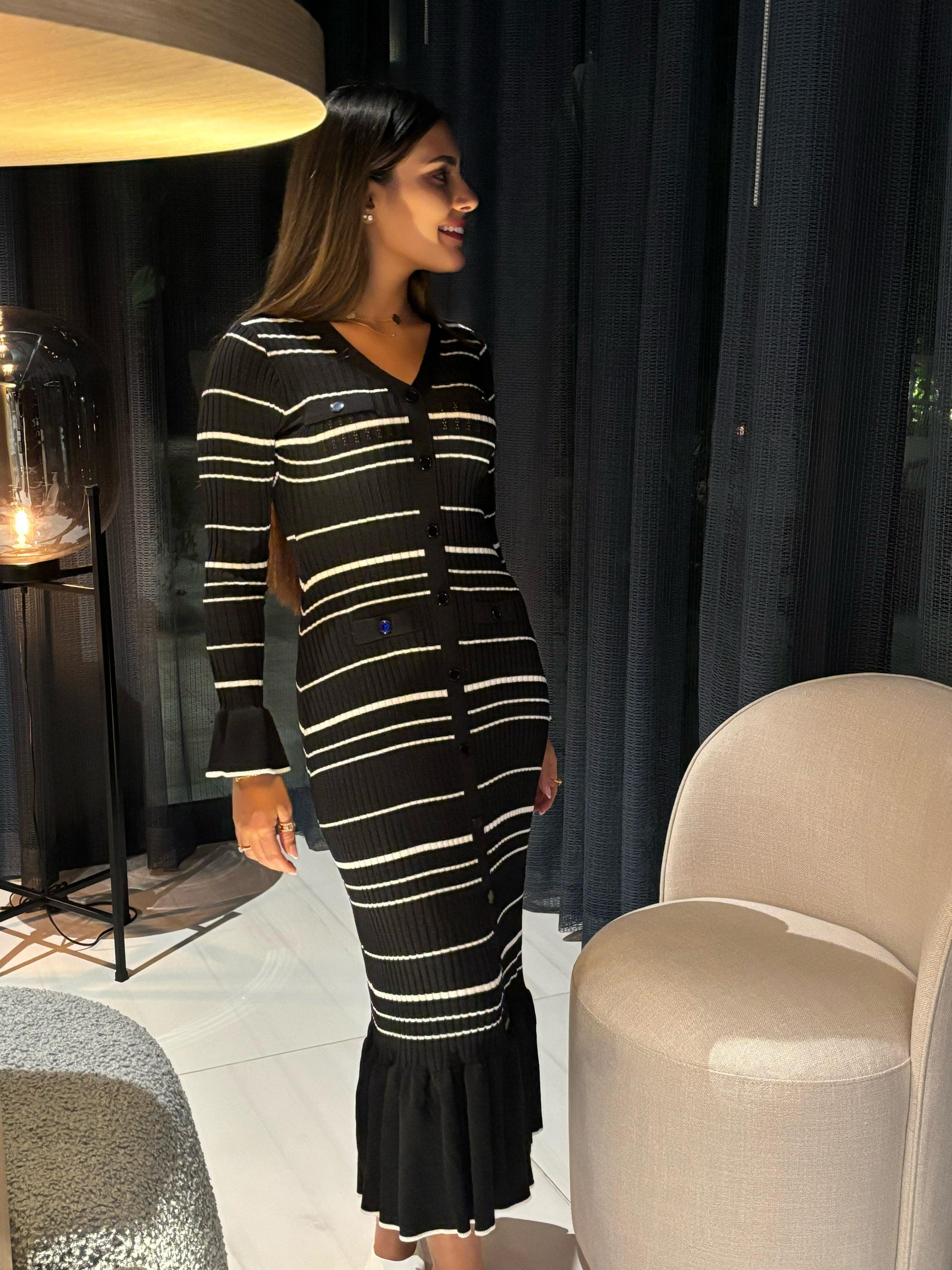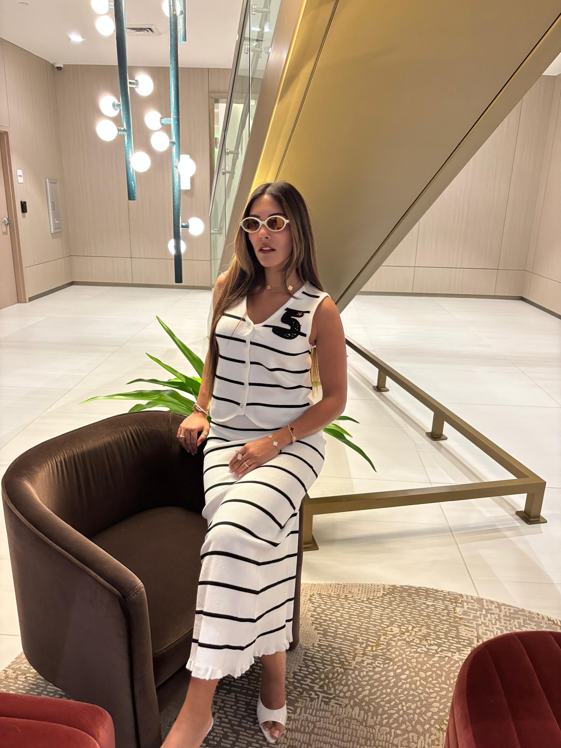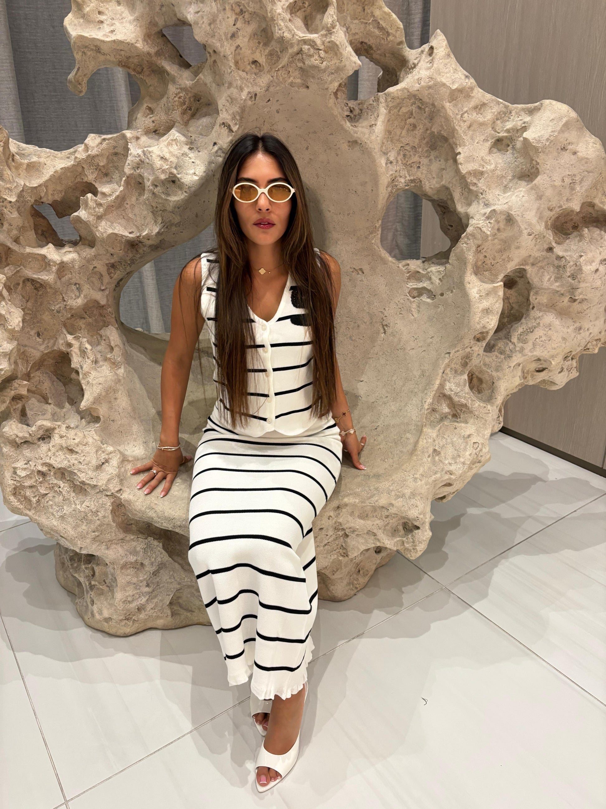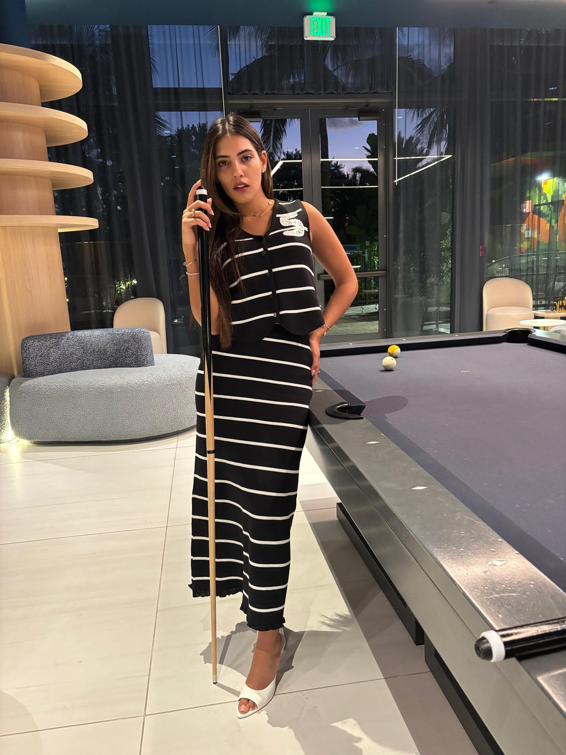 A timeless striped two-piece set with effortless elegance, available in black or white, one size fits all.